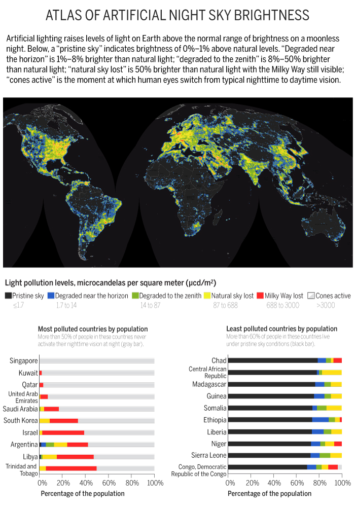While an estimated 56% of New Zealand’s population cannot admire the Milky Way, more than 99% of European citizens live with light-polluted night skies. Data that is not hard to believe if one looks at the first light pollution atlas compiled by Fabio Falchi, an Italian researcher at the Light Pollution Science and Technology Institute (ISTIL), and his collaborators in 2001, by means of a U.S. Air Force satellite. “A useful communication tool”, Conservation Scientist Travis Longcore called it, “to open everybody’s eyes” and, along with the IDA, to offer fertile ground for solutions and key regulatory interventions.