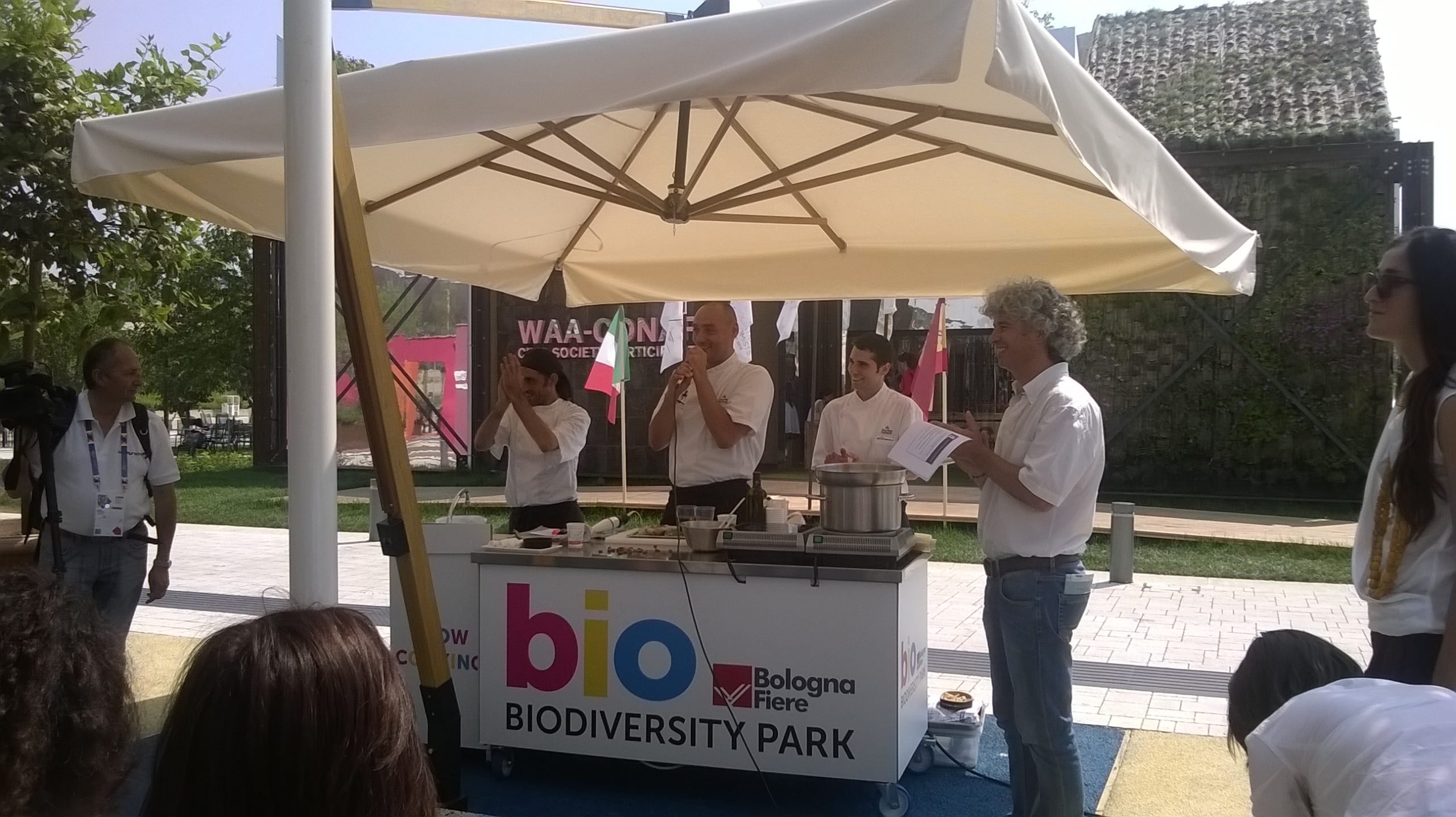 L’evento si è infatti aperto con un buffet di benvenuto realizzato con alimenti recuperati perché non consumati all’interno di Expo ma ancora perfettamente consumabili e quindi all’insegna del motto “zero spreco” e assolutamente a km 0 – evento, questo, unico nel suo genere presso l’esposizione universale a Milano; il pranzo leggero è stato poi seguito da una breve conferenza sullo spreco alimentare.