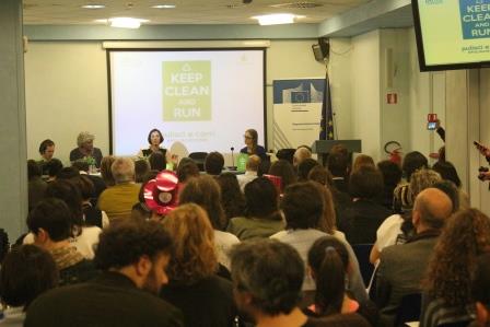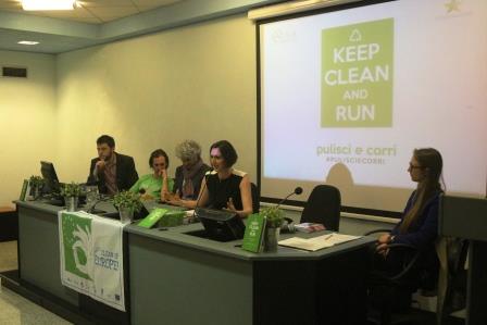 L’evento si è infatti aperto con la conferenza stampa di Keep Clean and Run – #pulisciecorri, l’eco-trail di 350 chilometri che partirà sabato 30 aprile da San Benedetto del Tronto (AP) e si concluderà venerdì 6 maggio a Roma. Un appuntamento che rappresenta l’evento centrale italiano del secondo “European Clean Up Day”, campagna europea contro l’abbandono dei rifiuti (littering) che si terrà in tutto il continente dal 6 all’ 8 maggio. Oltre ai due corridori, Roberto Cavallo – rifiutologo di Scala Mercalli – e Oliviero Alotto, è intervenuta anche Lucia Cuffaro, autrice di una rubrica sull’autoproduzione in onda su UnoMattina.