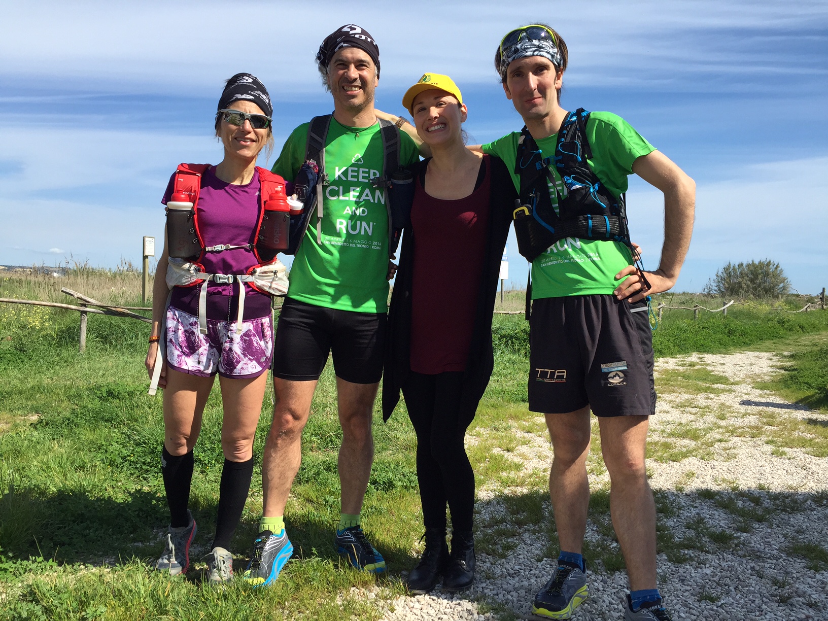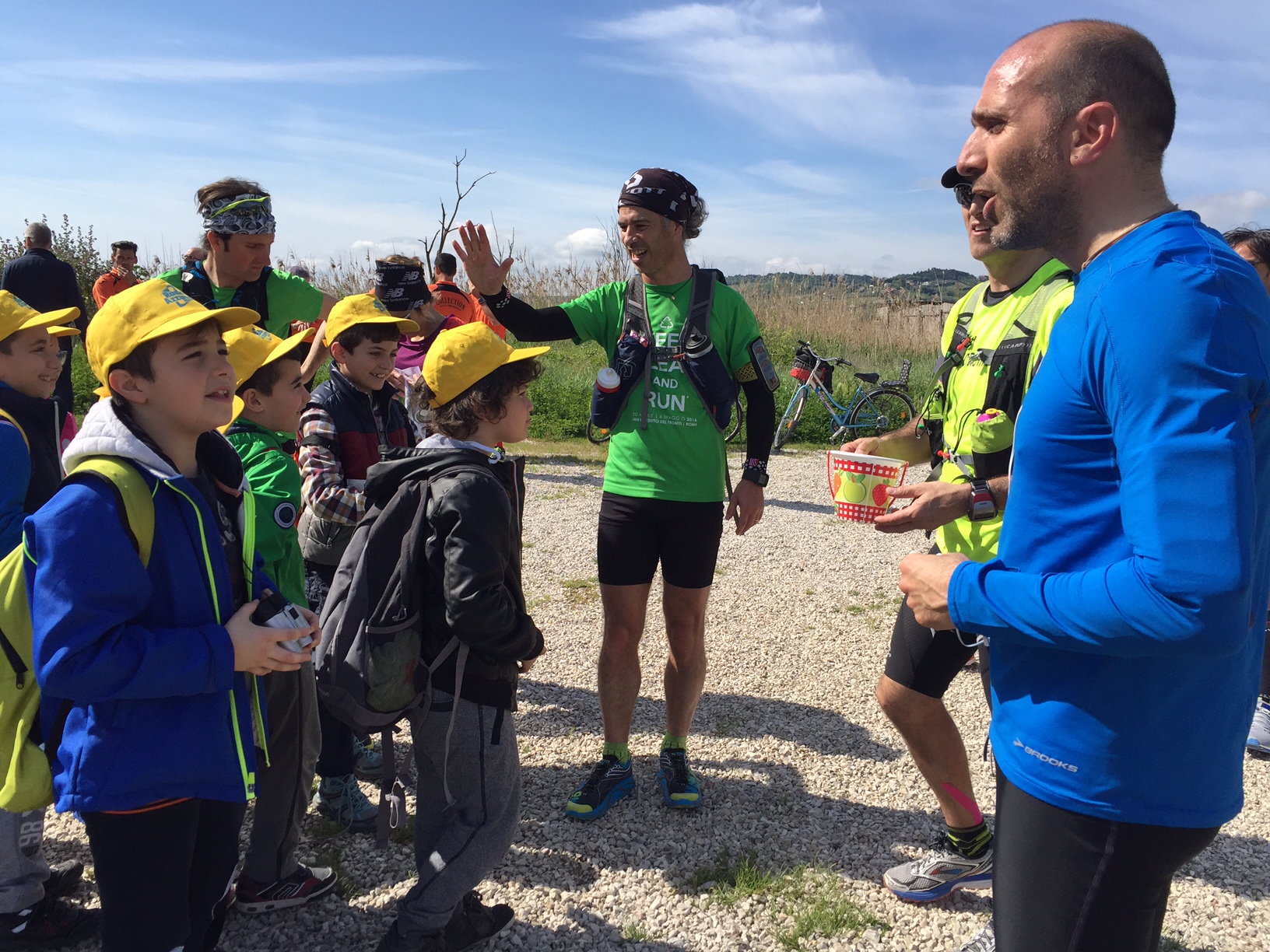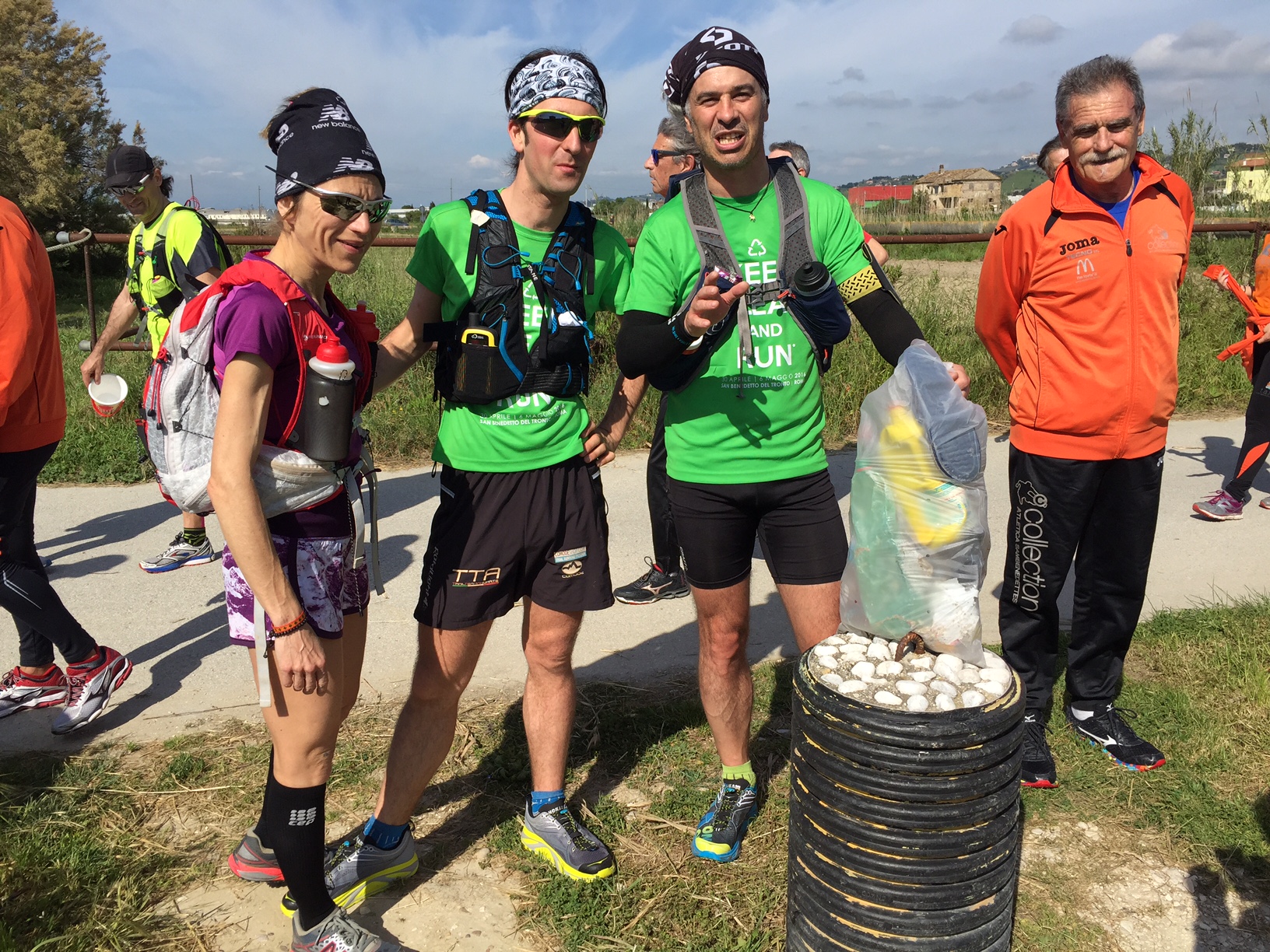 Ma tornando alla corsa: il gruppo di corridori ha incontrato dopo pochi chilometri alcune classi di studenti coinvolti in azioni di pulizia lungo la spiaggia, nei pressi della Riserva Naturale Regionale Sentina. Qui si è svolto il primo checkpoint: Roberto e Oliviero hanno raccontato ai ragazzi il senso della corsa per poi proseguire il trail verso il secondo checkpoint, ovvero il centro di raccolta rifiuti Picenambiente SpA.