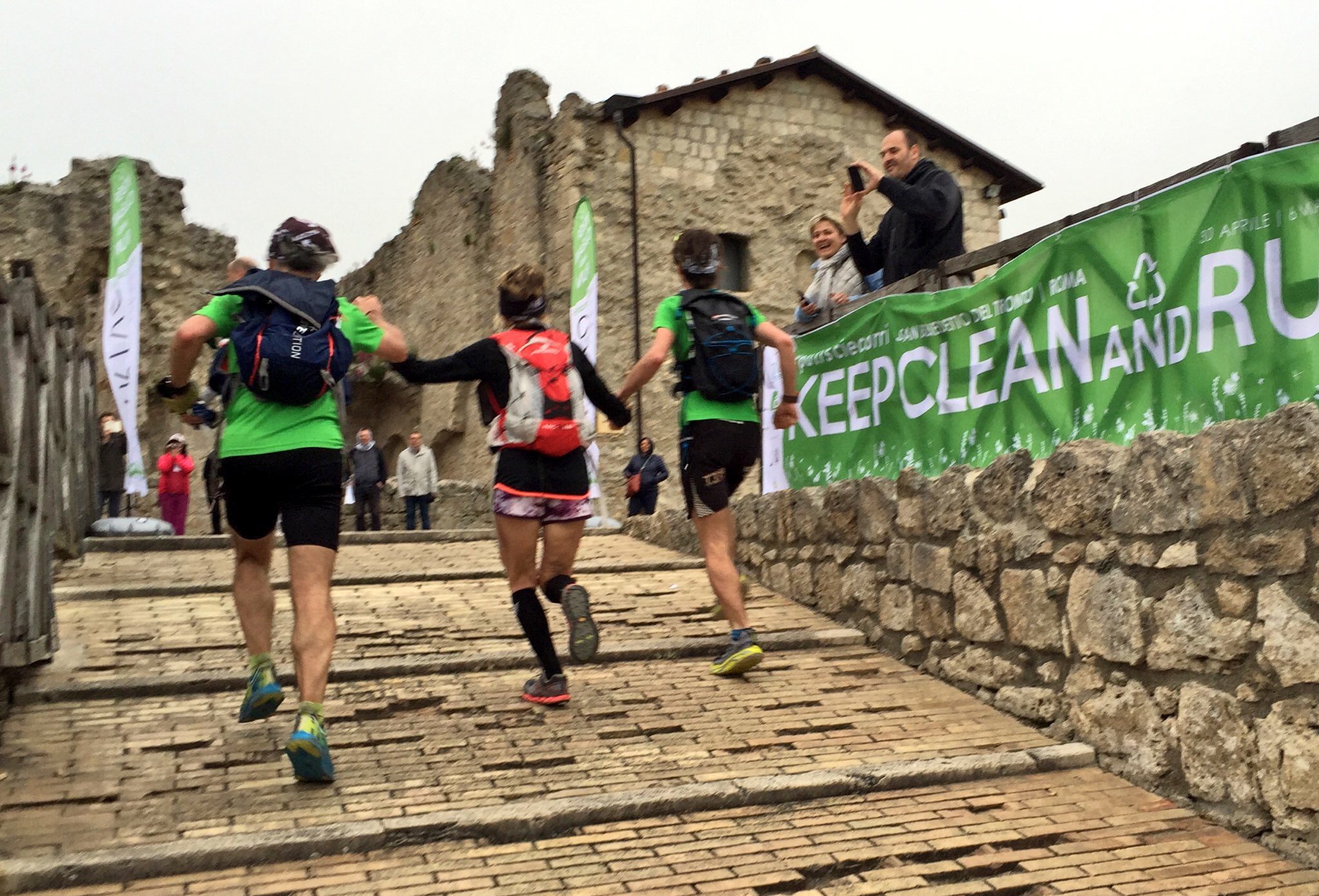 Dopo una piccola escursione guidata del centro il gruppo è poi ripartito arrivando a destinazione, a Civitella del Tronto, intorno alle 17. Qui i due corridori e Katia hanno tagliato il primo nastro della seconda edizione di Keep Clean and Run e hanno tenuto un incontro pubblico di sensibilizzazione sull’abbandono dei rifiuti nella sala incontri della Fortezza di Civitella.