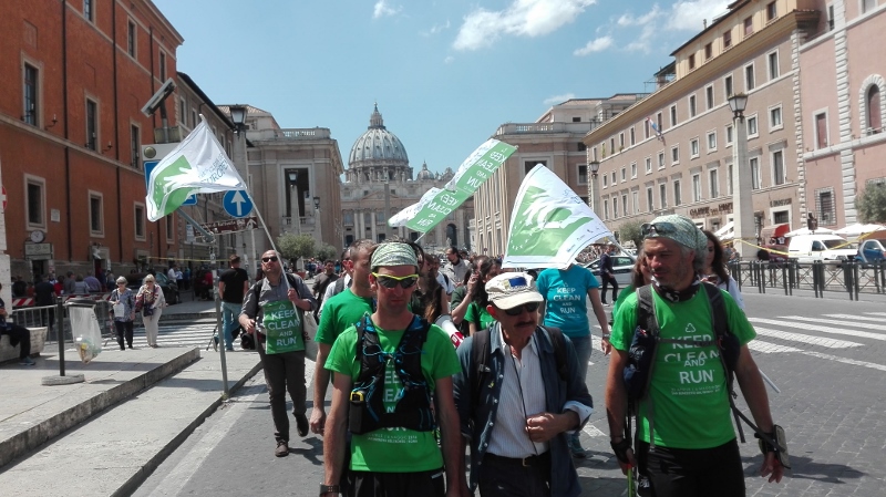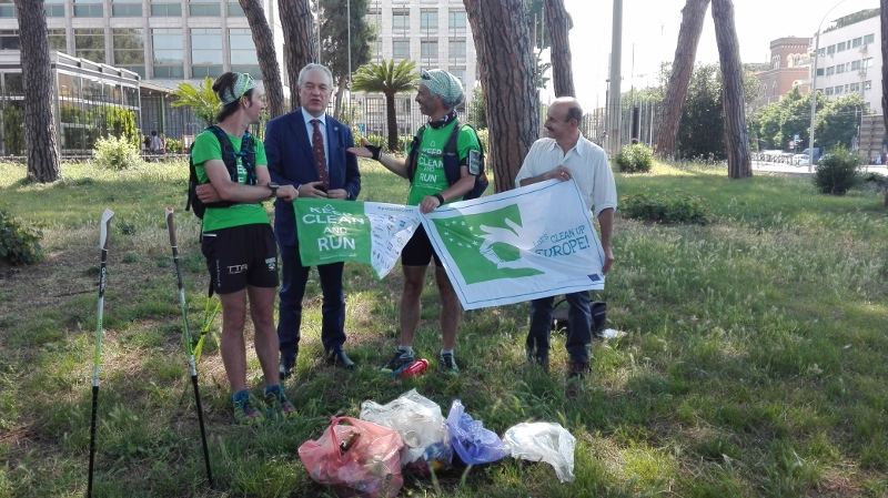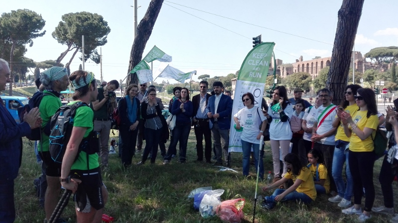 Dopo 350 chilometri di fatica e sudore. Dopo aver attraversato tre Regioni del Centro Italia, tra montagne, pianure e boschi. Dopo aver sfidato la neve e la pioggia. Dopo aver incontrato e sensibilizzato donne e uomini, anziani e bambini, oggi è arrivata a Roma la seconda edizione di Keep Clean and Run#pulisciecorri, eco-trail di 350 chilometri contro l’abbandono di rifiuti svoltosi tra Marche e Lazio (passando per l’Abruzzo) che rappresenta l’evento centrale italiano del terzo “European Clean Up Day”, la campagna contro l’abbandono dei rifiuti (littering) promossa dalla Commissione Europea. L’eco-trail, promosso da AICA, è stato realizzato in collaborazione con il Ministero dell’Ambiente e della Tutela del Territorio e del Mare.