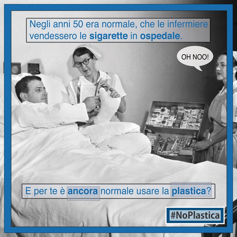 “A pensarci oggi, sembra una cosa impossibile. Eppure negli anni 50 non era cosi strano vendere le sigarette in ospedale. Per molti oggigiorno è ancora normale fare un uso eccessivo di oggetti di plastica. Che siano piatti e bicchieri, le buste della spesa, le bottiglie o anche gli involucri della frutta e verdura: come ripenseremo fra qualche anno allo spreco attuale?”