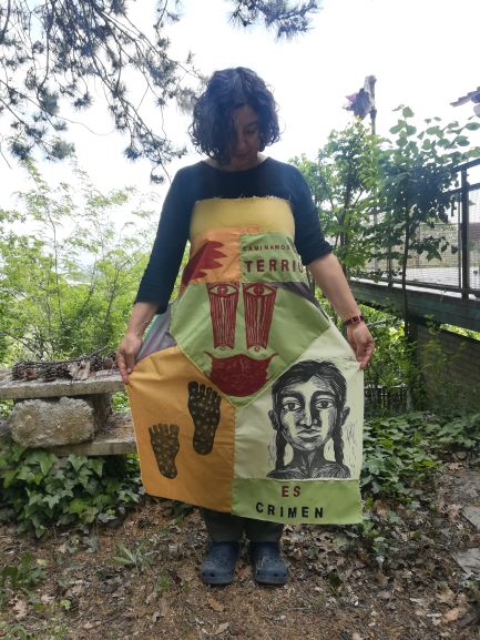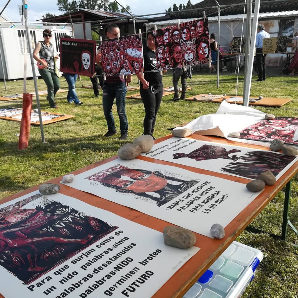 A conclusione della camminata, la mostra Furia di Lama, dell’artista Mariana Chiesa Mateos, una donna argentina che vive da 13 anni in Italia, nell’Appennino Bolognese, in stretto contatto con il Movimento delle donne indigene. Le opere di Mariana nascono da un progetto contro la violenza (edito da Else in manifesti serigrafici), una mostra che a Roma ha contribuito a raccogliere fondi per la camminata in Argentina.