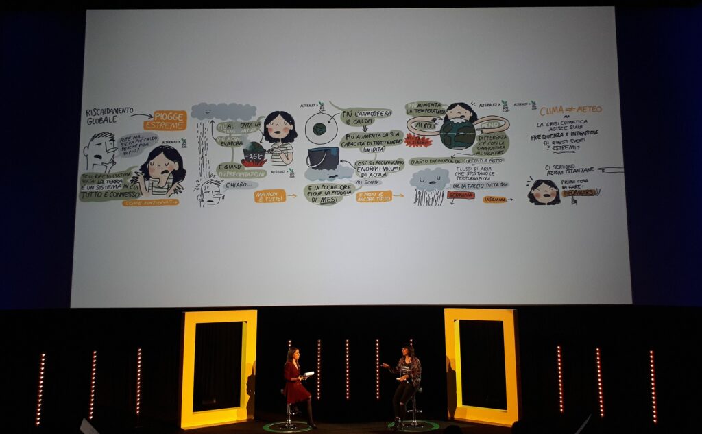 Alessia dà un volto a questo progetto con lo strumento del disegno: “è efficace secondo me perché io non sono una scienziata eppure mi interesso al pianeta” e tale consapevolezza ha fomentato in lei l’idea che “spesso per capire il mondo è più semplice disegnarlo, vederlo in immagini”. L’arte del disegno si prefigura come un potente strumento di sensibilizzazione ai problemi che affliggono il nostro pianeta. Serve a condividere un messaggio in modo immediato e comprensibile. “Quando uno non è un tecnico e deve leggere 10 pagine di un paper scientifico, tutti questi dati, queste informazioni rischiano di rimanere un po’ nell’aria” come “qualcosa che non ci tocca per davvero” continua. Ideando delle semplici illustrazioni metaforiche che animano e umanizzano un problema, Alessia combatte l’inconsapevolezza rendendo visibile l’invisibile e più chiara la strada verso un cambiamento coscientemente sostenibile.