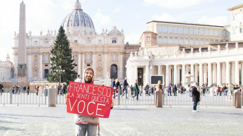 Sei andato a Roma con questo strumento, e hai fatto ascoltare i suoni provenienti dall’Albero di Natale di Piazza San Pietro, che è ancora vivo, sradicato, sofferente…