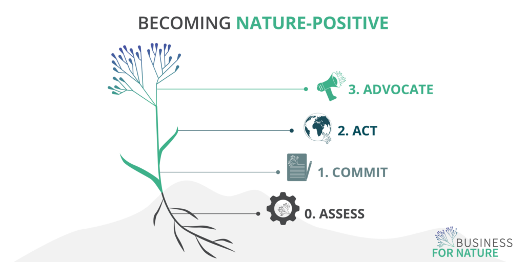 Nel caso di Business for Nature, rivolgersi al potenziale di circolarità delle industrie e stabilire una legislazione solida con condizioni di parità, renderebbero possibile il passaggio a imprese più sostenibili. Per preparare ogni azienda ad adattarsi ad un cambiamento nature-positive, Business For Nature suggerisce 4 passi da seguire: