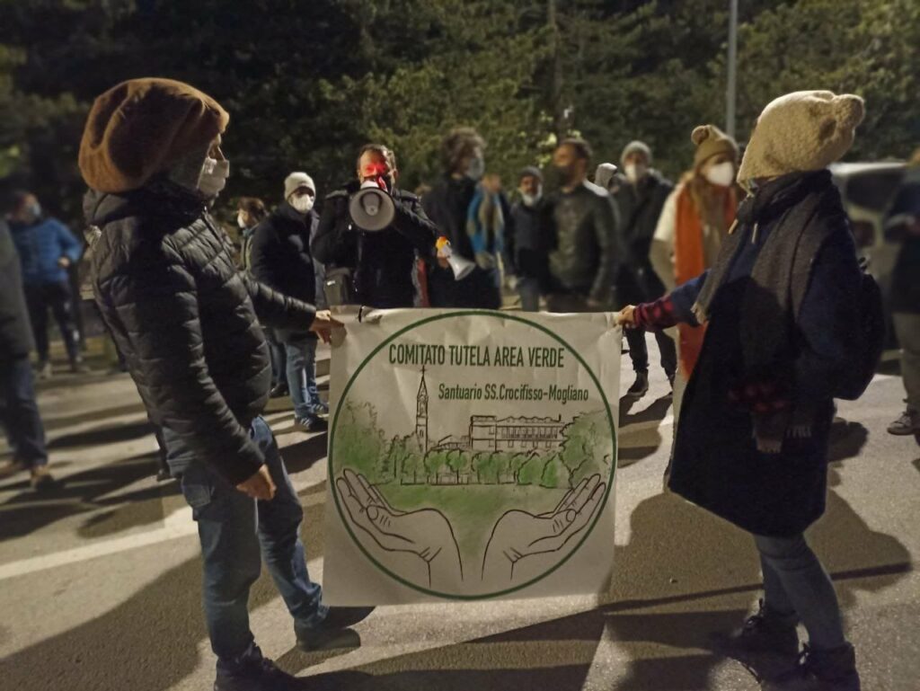 Mogliano, in provincia di Macerata, antico borgo tra i monti Sibillini e la riviera Adriatica, 4400 anime. Il 3 febbraio 2022 è stata approvata definitivamente la variante al piano regolatore che darà il via alla cementificazione dell’area verde del Santuario del SS. Crocifisso, una bellissima area incontaminata di un ettaro con 180 alberi, che da sempre ha ospitato attività sociali e ricreative.
