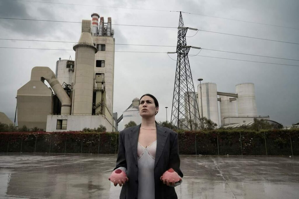 È uno degli scatti più suggestivi del Martyrion_project, dell’artista Teresa Antignani e della fotografa Sara Terracciano, che con questo progetto stanno narrando le lotte e sofferenze di tanti luoghi d’Italia. In un’immagine hanno saputo sintetizzare il dolore e l’impegno di tanti. Le malattie portate dall’inquinamento, una terra devastata, sono qui rappresentate da una moderna Sant’Agata, ripresa davanti ad un cementificio, con i seni strappati, in mano.