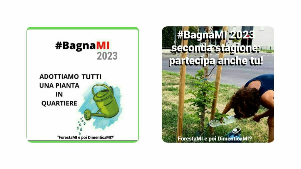 Per seguire la campagna Pagina Facebook: ForestaMI e poi DimenticaMI? Gruppo Facebook: BagnaMI - milanesi bagnanti di alberi Account Instagram: @forestami_e_bagnami