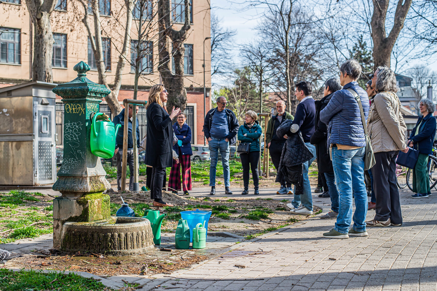 Lezioni all’aperto in presenza, ma fruibili anche tramite video, durante le quali spieghiamo alle persone come bagnare un albero e prendersene cura. Abbiamo iniziato sabato scorso, la risposta è stata ottima: una quarantina di “bagnanti” attenti e interessati, di tutte le età, quasi tutte persone nuove.