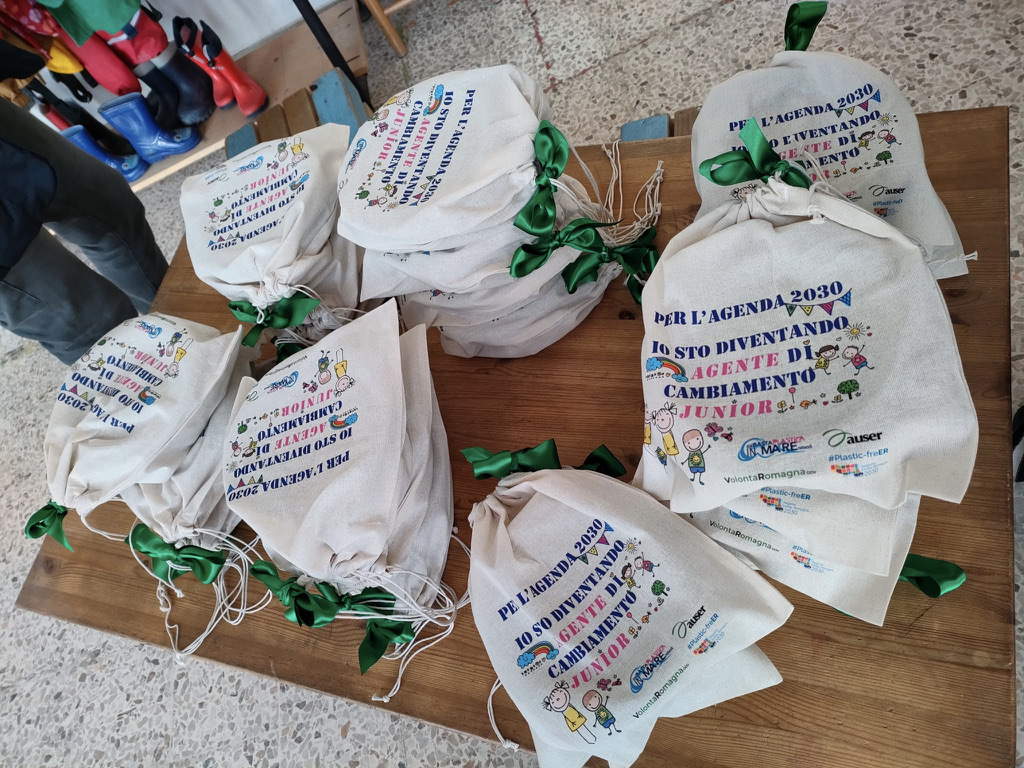 Prima delle vacanze natalizie, insieme a maestre e coordinatrici educative della Cooperativa il Millepiedi, abbiamo consegnato il kit anti-spreco ai bambini della scuola dell’infanzia e primaria della “Scuola sul Mare” a Viserbella di Rimini. È il progetto “Agenti di Cambiamento Junior per l’Agenda 2030”, che si svolgerà durante tutto l’anno scolastico anche in altre scuole comunali del Riminese, per un totale di circa 300 alunni. Il kit anti-spreco consiste in un sacchetto di tela stampato, un contenitore in plastica durevole, lavabile all’infinito in lavastoviglie. Si tratta di un prodotto di qualità della start-up ReCircle già usato nelle mense svizzere e milanesi. Abbiamo una rete di collaboratori, tra i quali Enzo Favoino e gli amici lombardi che con La Spesa Sballata hanno già stipulato un “patto di corresponsabilità” con i presidi sanitari locali e ci avvaliamo anche della loro esperienza già rodata nei negozi, per il vuoto a rendere e i contenitori portati da casa.