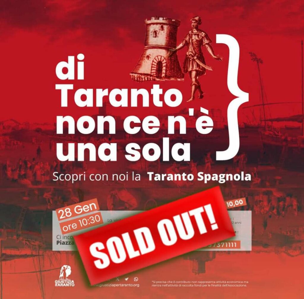 Continueremo con visite dal taglio originale e sempre supportate da guide riconosciute, competenti e innamorate come noi del territorio: conosceremo più da vicino le donne che hanno fatto la storia della città, faremo un tour dei quartieri alla scoperta delle unicità che fanno da sfondo al nostro quotidiano. Ma ne stiamo studiando anche un’altra che possa dar peso alla richiesta di riportare alla luce l’antico teatro greco sul Mar piccolo che, secondo alcuni studi recenti del dott. Romano, potrebbe trovarsi nell’area dell’ospedale militare, tenutasi lontana da antropizzazione e cementificazione.