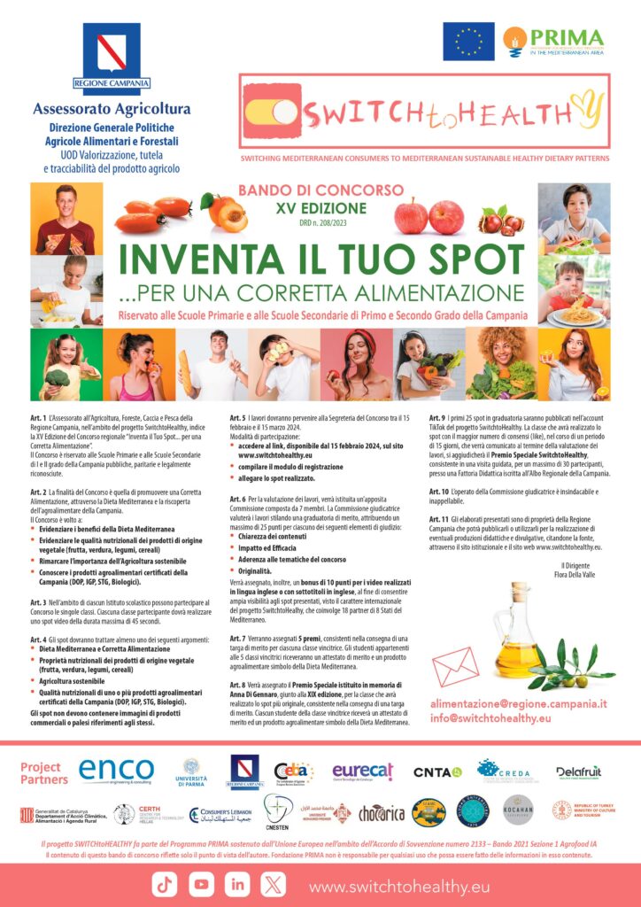 L’Assessorato all’Agricoltura, Foreste, Caccia e Pesca della Regione Campania, nell’ambito del progetto SwitchtoHealthy, ha lanciato la XV Edizione del Concorso regionale “Inventa il Tuo Spot…per una Corretta Alimentazione”.