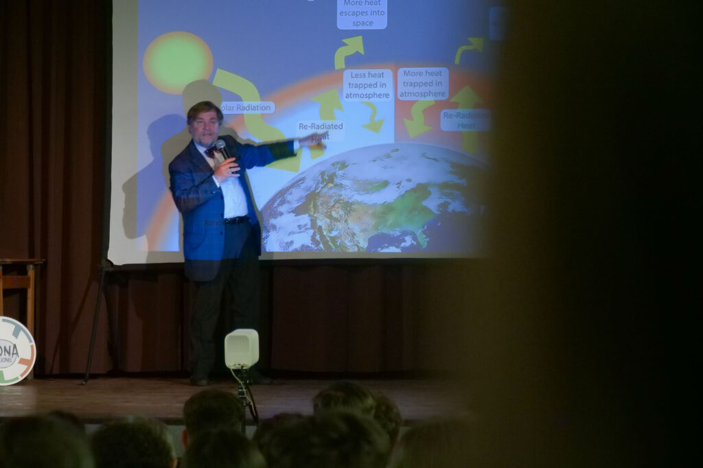 Il primo giorno, giovedì 23 maggio, alcune scuole superiori di Alba hanno avuto la possibilità di dialogare con il climatologo Luca Mercalli e il docente di ecologia industriale Giovanni De Feo, che hanno tenuto due incontri costruttivi, interattivi e ricchi di spunti di riflessione, per dare maggiore consapevolezza sul futuro del pianeta e sulle conseguente del cambiamento climatico.