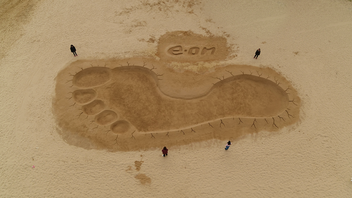 Il podcast inoltre, porta in copertina la foto dell’Impronta del gigante invisibile [foto di copertina N.d.R.] realizzata sulla spiaggia di Termoli in Molise dalla stessa E.ON nel 2022, già un’ iniziativa per sensibilizzare verso il grande impatto che l’essere umano ha sulla Terra, in termini di emissioni di CO2.