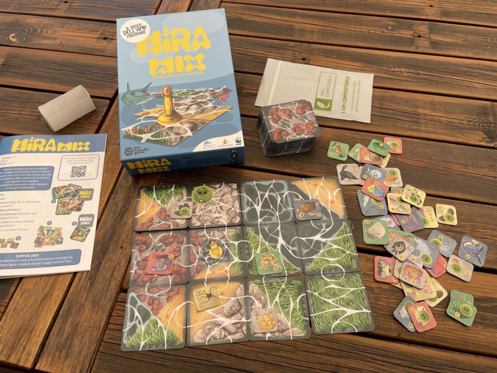Miramix è un gioco in scatola per bambini dagli 8 anni, illustrato dal bravissimo Giulio Quarantotto. E’ ricco di informazioni sull’ambiente marino, sugli organismi che ci vivono, sulle minacce che incombono, come il cambiamento climatico e la sovrapesca.