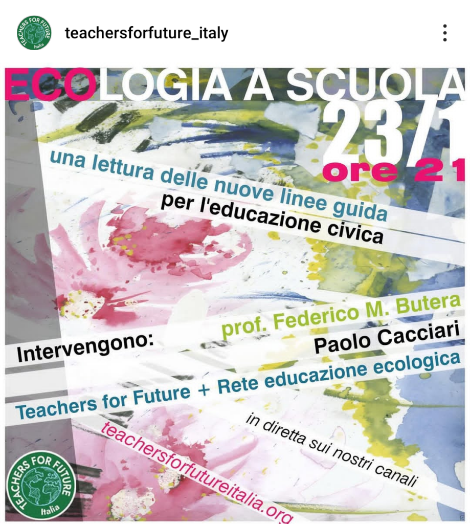 I Teachers for Future sono una rete nazionale di insegnanti, educatori, dirigenti scolastici e ricercatori, nata nel 2019 sulla scia delle mobilitazioni studentesche per il clima.