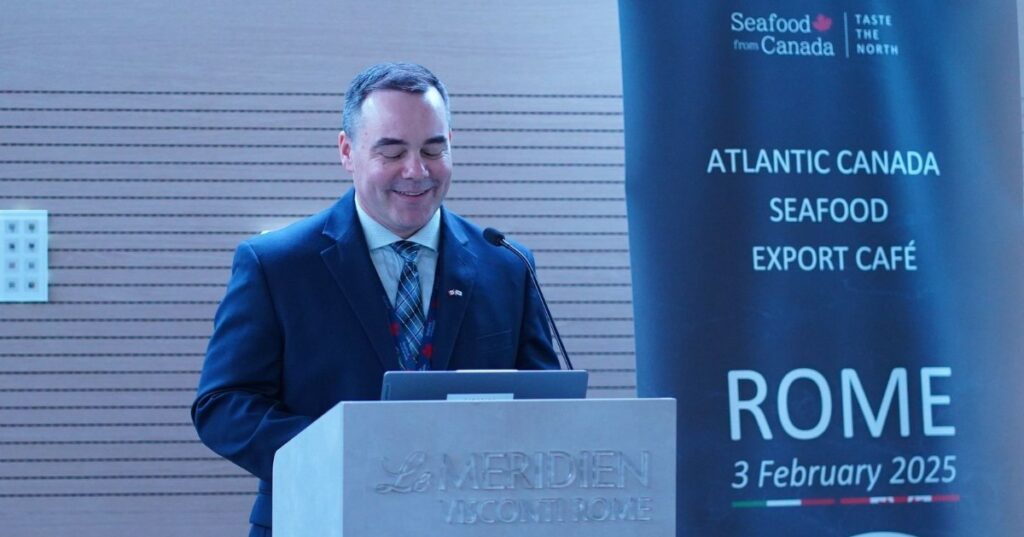 Elissa Golberg, Ambasciatrice del Canada in Italia e il Ministro Kent Smith, del Dipartimento della Pesca e dell’Acquacoltura della Nuova Scozia, in rappresentanza di tutto il Canada Atlantico, hanno partecipato all’Atlantic Canada Seafood Export Cafè a Roma.