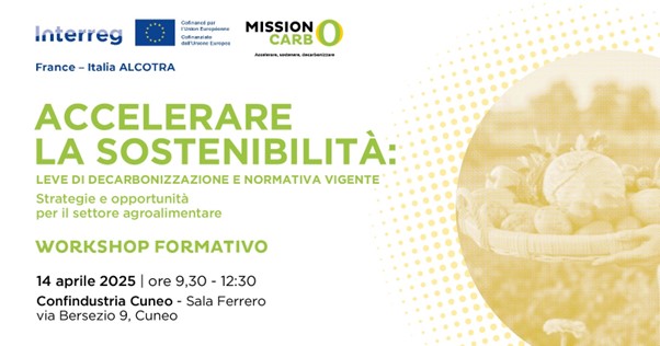 Tra le prossime iniziative segnaliamo il workshop formativo Accelerare la sostenibilità: leve di decarbonizzazione e normativa vigente. Strategie e opportunità per il settore agroalimentare, in programma il  14 aprile prossimo a Cuneo, organizzato dai partner cuneesi con lo scopo di divulgare e diffondere le tematiche di decarbonizzazione e aiutare le imprese del settore agroalimentare a ridurre la propria impronta di carbonio.