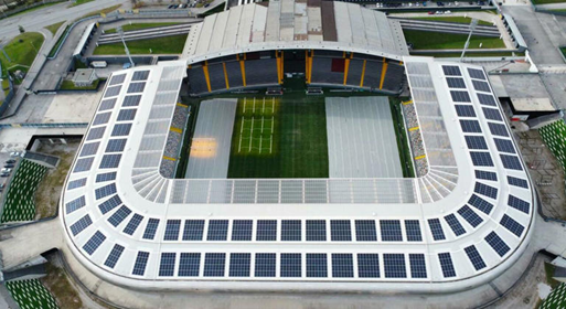 Uno degli elementi simbolo di questo impegno è il Bluenergy Stadium, dotato di un impianto fotovoltaico composto da 2.409 pannelli solari, distribuiti sul tetto della struttura. L’impianto produce circa 3.000 kWh al giorno, coprendo il 70% del fabbisogno energetico dello stadio.