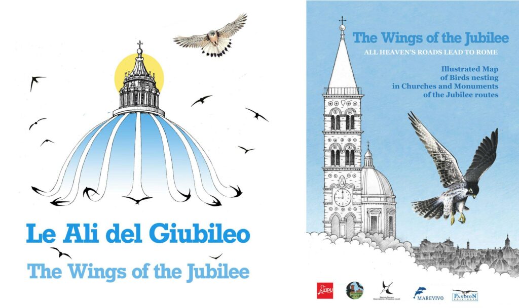 Le Ali del giubileo – The Wings of the Jubilee è una mappa illustrata degli uccelli nidificanti in monumenti e chiese dei Cammini Giubilari, mostrando luoghi, abitudini e curiosità della maggior parte delle specie appartenenti all’avifauna.