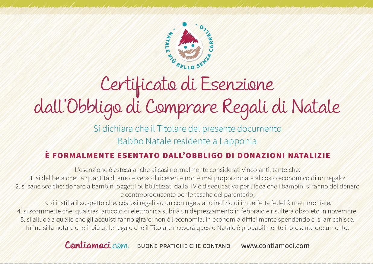 Contiamoci.com e il Certificato di Esenzione dall’Obbligo di Comprare Regali
